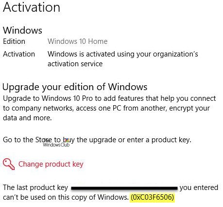 Source: https://www.thewindowsclub.com/fix-windows-10-upgrade-or-activation-error-0xc03f6506